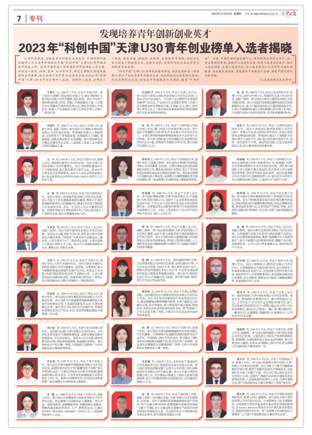 天津北洋康肽生物科技有限公司创始人王跃飞入选2023年“科创中国”一天津U30青年创业榜单